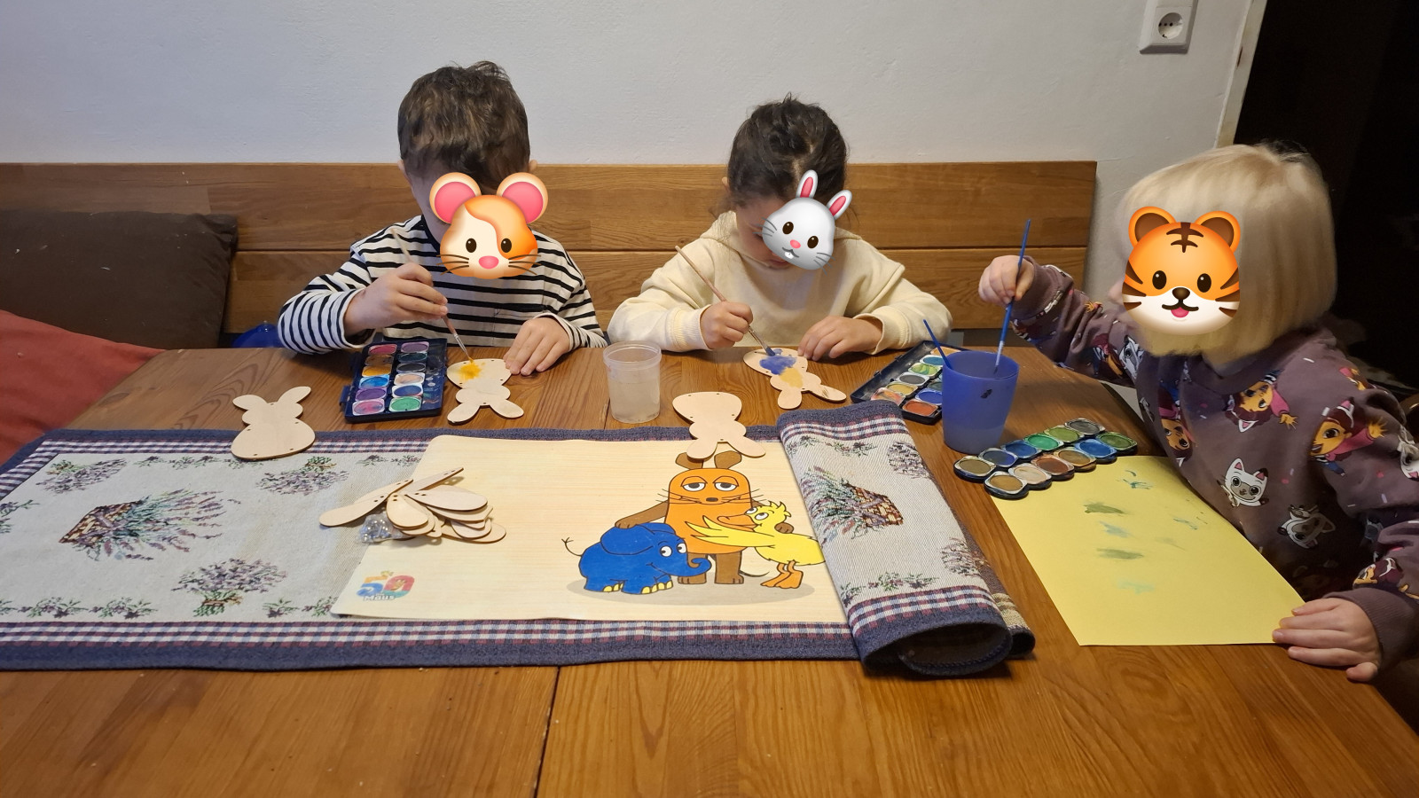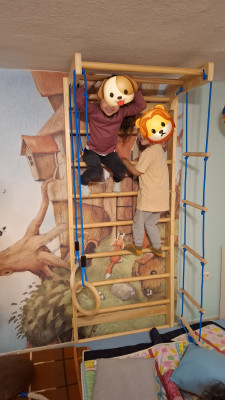 Kinder haben besondere Bedürfnisse an die Einrichtung: der Waschbereich hat einen Wickeltisch, niedrige Waschbecken und eine separate Toilette. Für den Mittagsschlaf oder um sich auszuruhen gibt es den Schlafbereich mit einer eigenen Matratze für jedes Kind. Die Küche ist besonders wichtig: hier bereiten wir – auch oft gemeinsam mit den Kindern – die Mahlzeiten zu und lassen es uns zusammen am großen Tisch schmecken. In den Räumen gibt es verschiedene Bereiche zum Basteln oder Spielen – mache Bereiche werden auch für verschiedene Anlässe umgeräumt. In den Räumen wird natürlich nicht geraucht.